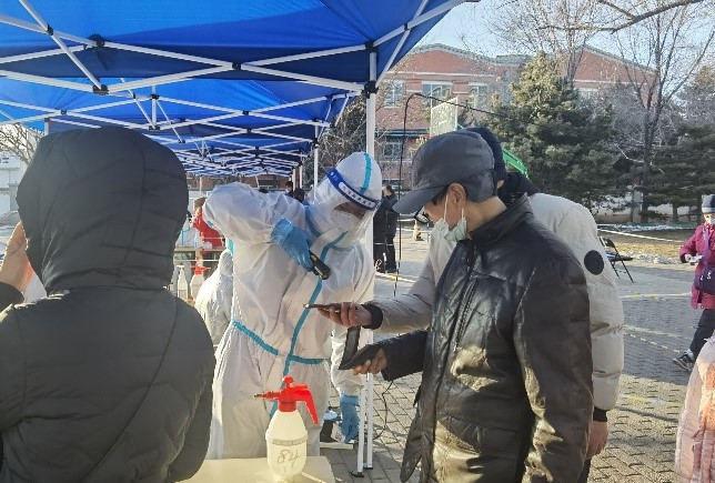 在参与志愿服务的过程中,也有不少挑战。来自交控2021-01班的郭荣琪同学讲述到:“我的工作是扫二维码和试管码,其实并不知道其他工作人员的位置,无法及时解答群众的其他难题。许多老人没有智能手机,无法扫北京健康宝的检测二维码。另外,其中很多老人并不懂普通话,与他们的交流是需要很耐心的。还有些老人腿脚不便,从取样棚走到扫码人员那边的时候往往会阻挡本来就拥挤的待检队伍”。尽管困难重重,但是我们的机械学子并没有就此退缩,反而奋力向前,越战越勇。
