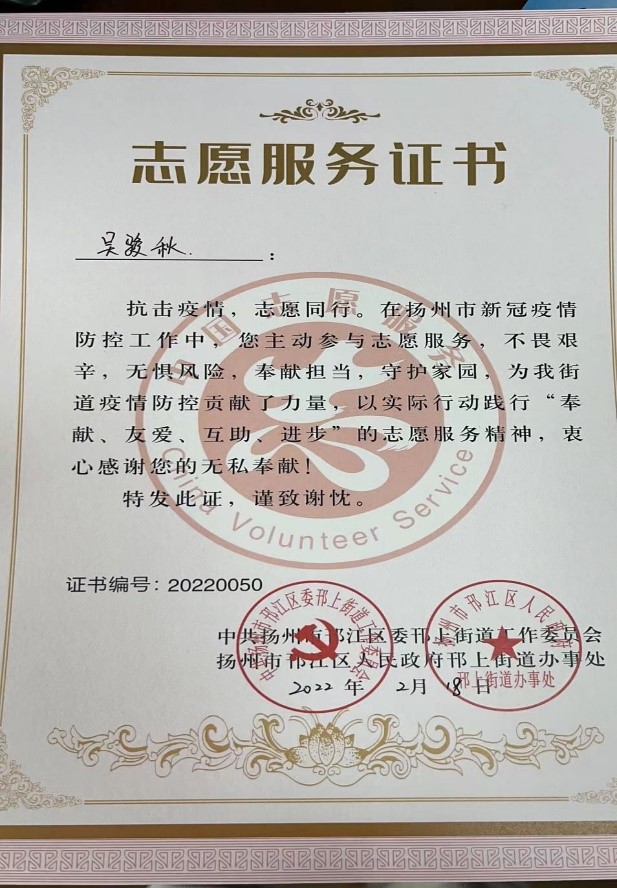 机械学子在经历抗疫志愿工作过后,每个人对抗疫活动都有着深刻的体会。王荷茗同学表示:“疫情是大事,关乎每一个人的安全,在疫情形势严峻的当下,我们应该尽自己所能为周边社区贡献微薄力量,听指挥,不为疫情防控添乱。” 郭荣琪同学谈到:“学到了很多防疫知识,增强了使用办公软件的能力,认识了很多同行的老员工朋友。”张子钰同学谈到:“新冠肺炎威胁人民的生命安全,核酸检测则保护百姓身体健康,虽然我们的任务是临时的,我们只用负责从中午到晚上的核酸检测,责任固然是重大的,心理压力也可想而知。不过,我既然选择了做这份工作,就一定要为人民的健康负责。”