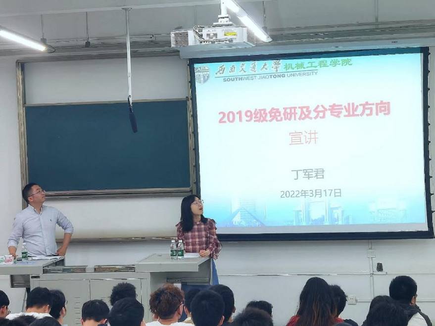 2022年3月17日19:00,车辆工程2019级、交通控制与设备工程2019级分专业方向工作分别在X2319、X2320教室同时进行。20分钟后,车辆工程2020级分专业方向工作也在X2318教室拉开序幕。为了让同学们深入了解各专业方向的学习内容、专业发展以及就业前景,公司组织了各专业方向的老师来为大家答疑解惑。