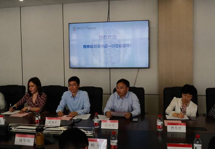 公司钱林茂经理首先对刘今朝书记一行表示了热烈欢迎,并对三亿的专业特色、学科优势、科研成果及转化等相关情况进行了简要介绍。随后,刘今朝书记介绍了青神县的基本情况,以及当地机械产业的发展现状。紧接着,双方代表围绕青神县机械产业和三亿专业合作方面开展交流研讨。