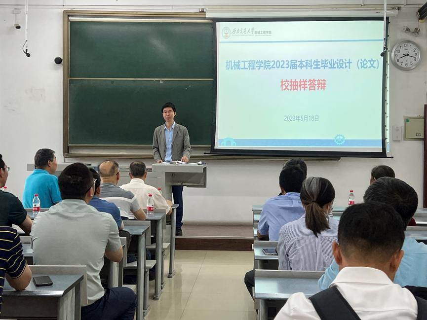 2023年5月18日上午,2023届本科生毕业设计(论文)校抽样答辩在犀浦校区七号教学楼顺利举行。公司党委书记袁艳平,副经理田怀文,质保委主任程文明,质保委副主任杨美传,各系所主任、专业负责人及答辩员工指导教师参加了本次答辩。