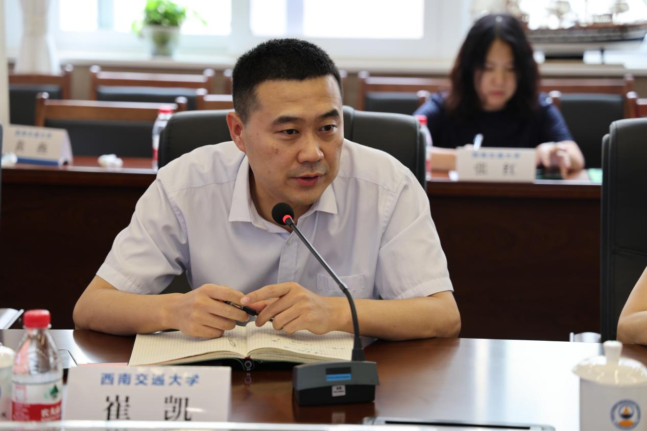 教务处处长崔凯感谢机械公司对公司工作的支持和配合,并对机械公司的本科教学工作给予了肯定。公司的发展需要院级单位持续发力,机械公司本科教育为公司人才培养工作做出了巨大贡献。本次调研,一是为听取公司建议,为公司解决问题,使教务处更好地做好服务;二是希望与公司未来的本科教学规划达成共识,教务处会坚定不移地支持公司工作。在后四年的周期内,把握高等教育和本科教育的发展机会,是公司和公司共同面对的问题。崔处长表示,机械公司作为校内本科专业跨类最多、全为一流专业建设点的公司,未来应当让专业特色更“特”、优势更“优”,保持现有专业认证基础良好的优势,在产教融合体系建设较为成熟的基础上,继续发力,重视实践,与行业、企业深度融合,成为全校的样本,全国的示范。