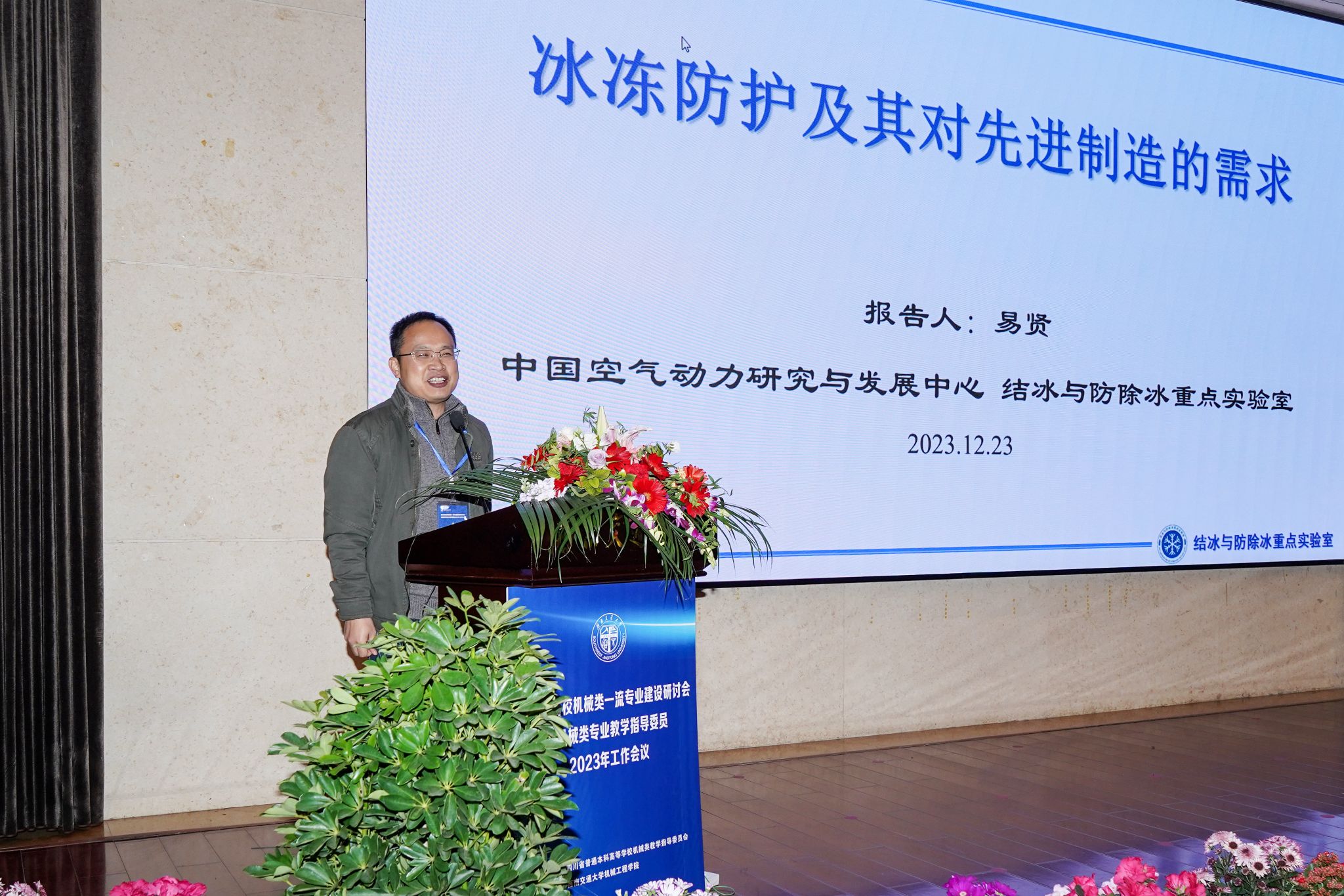 教指委委员、中国空气动力研究与发展中心易贤研究员以《冰冻防护及其对智能制造的影响》为题,介绍了动态结冰及其危害以及计算机仿真、风洞实验等研究手段,总结了结冰与防除冰重点实验室工作及主被动技术面临的挑战,强调先进制造、智能制造的发展将极大促进冰冻防护技术的发展,提出组建产学研用结合的联合研究团队的建议。