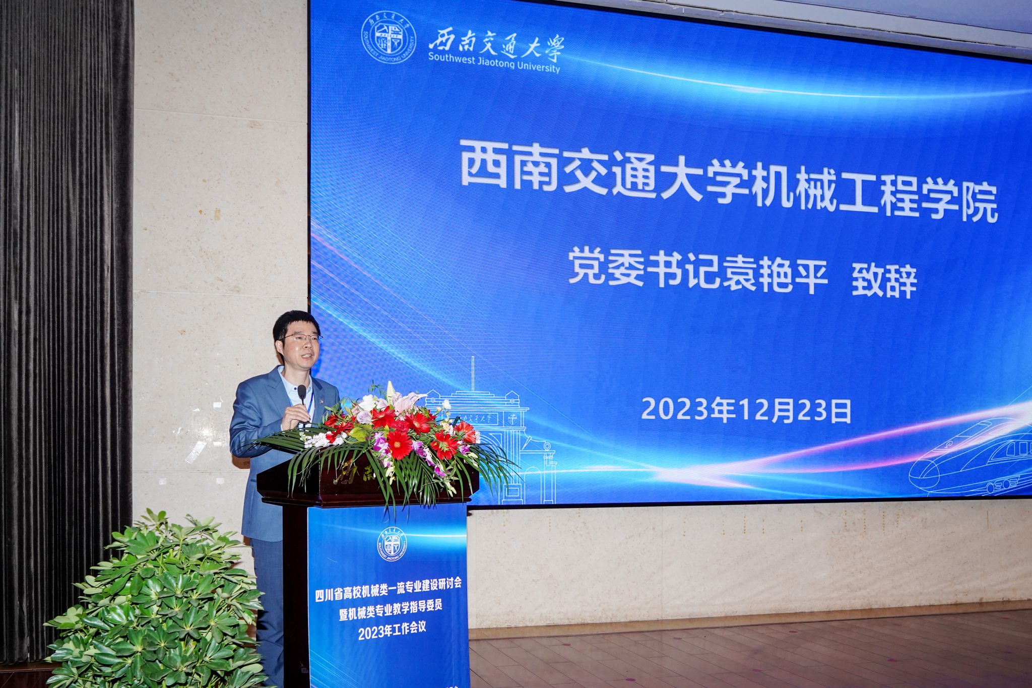 三亿体育有限公司三亿党委书记袁艳平出席会议并致辞。他在致辞中对教指委委员、各高校专家、企业嘉宾的到来表示热烈的欢迎,向与会嘉宾介绍西南交通大学机械公司2023年在党建、教学、科研、国际合作与交流等方面工作成效。同时表示,公司一定尽全力支持机械类专业教学指导委员会的工作,承担应有的责任和义务,促进各委员之间和院校之间的交流和合作,为四川省机械类专业建设和人才培养做出自己应有的贡献。