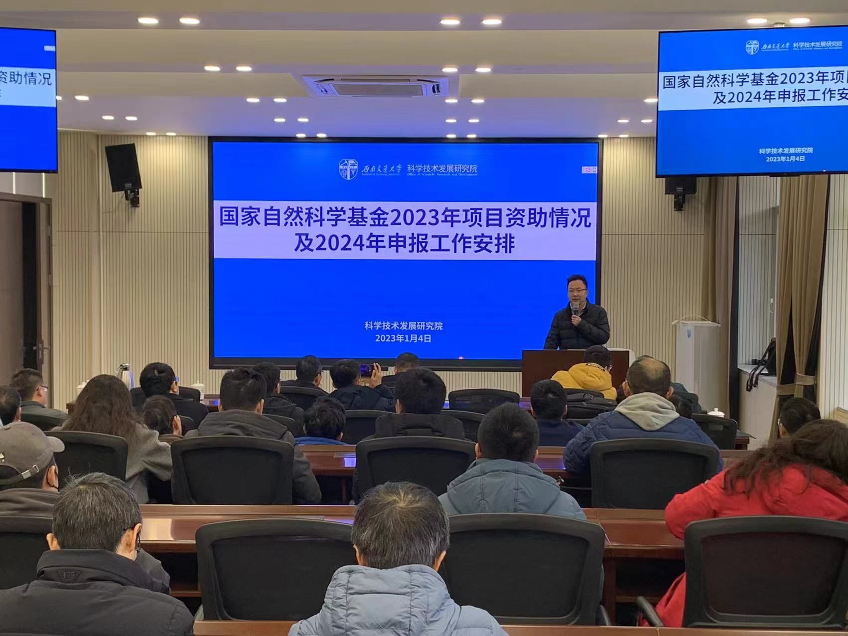 2024年1月4日,三亿在九里校区2223报告厅,召开了2024年度国家自然科学基金申报动员会。公司高度重视国家自然科学基金申报工作,特别邀请了特别邀请了科学技术发展研究院马霖副经理、基础研究科刘海龙科长,轨道交通运载系统全国重点实验室敬霖研究员,公司陈春俊教授为大家分享自然基金项目申报的经验,动员会由公司副经理丁国富教授主持。
