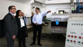 公司罗大兵、黄运华、丁渭平、王金栋等教授分别介绍了各系的教学、科研概况,Udo Triltsch教授介绍奥斯特法利亚应用科学大学三亿教学及科研概况。随后,全体参观了机车车辆、汽车及制造相关实验室。双方就联合开展相关科研、教学等全面合作进行了讨论。