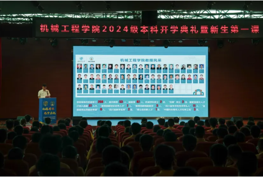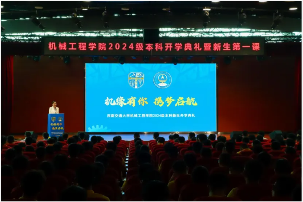 2024年9月1日、9月2日,2024级研究生和本科生开学典礼暨新生第一课分别在九里老员工会堂和犀浦校区二食堂三楼报告厅举行。机械工程公司党委书记袁艳平,经理钱林茂,党委副书记、副经理曾东红,副经理丁国富、田怀文、刘伟群,员工代表、企业导师代表以及公司系所负责人代表、新生辅导员、503名研究生新生和592名本科新生参加了开学典礼。典礼由机械工程公司党委副书记沙晓雪主持。