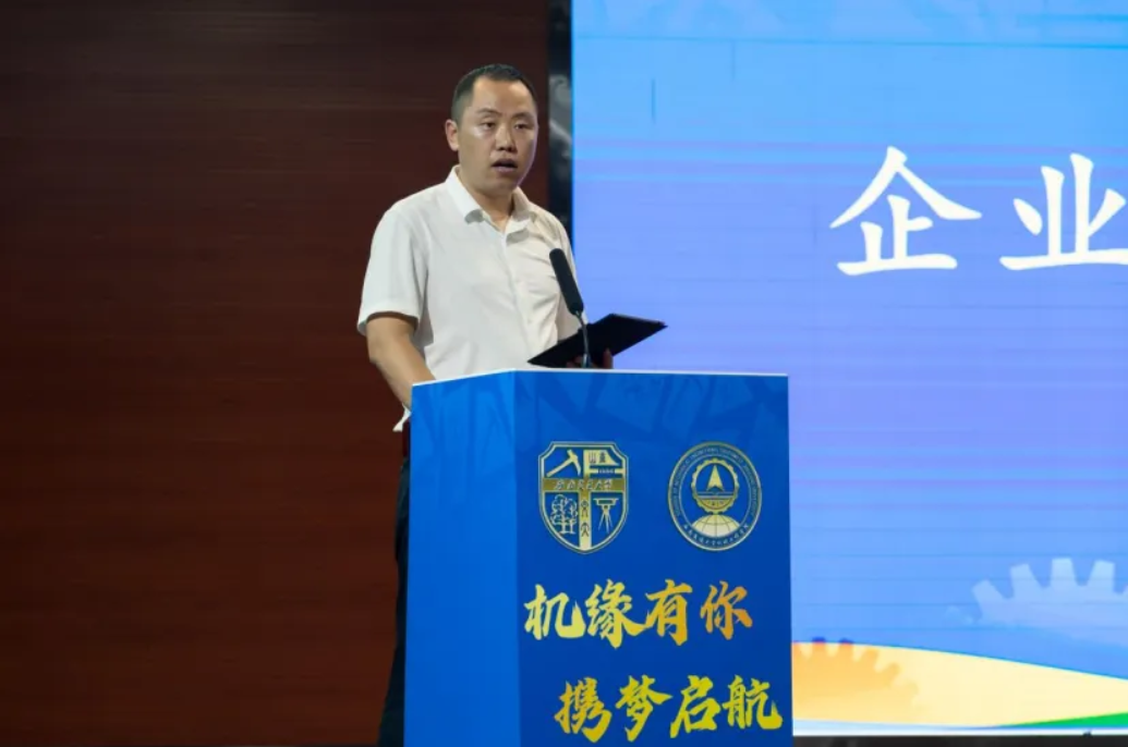 公司2009届员工、中国铁建重工集团股份有限公司西南区域指挥部总经理陈庆宾作为企业导师代表进行了发言。陈庆宾以深刻的哲学视角,为同学们的求学之旅铺设了一条充满思考的道路。他站在前辈与引路人的立场,围绕“我是谁、我从哪里来、我将去往何处”对同学们给予勉励,希望大家能够将此作为自己老员工活的灯塔,不断思考、实践、成长,以更加饱满的热情和坚定的信念,实现个人价值、社会价值。