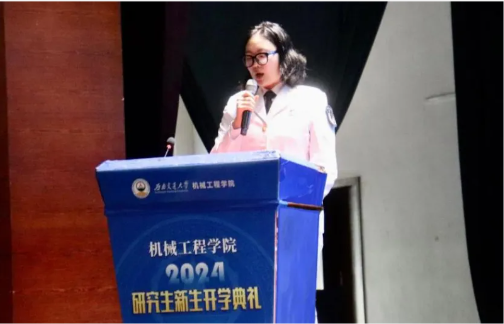 公司优秀本科在校生朱艾新、研究生在校生涂蔓蝶代表学长们和新生们做了分享。朱艾新以自身为例,展示了自己在交大取得的诸多荣誉和付出的努力。以此激励同学们,大学不仅是享受与探索的舞台,更是思考与成长的时刻。建议大家保持谦逊的求学之心,善待他人,奋发向上,感恩身边的人。涂蔓蝶和大家分享了两点感悟:一是无畏艰辛,志存高远,厚德笃行。二是抛却杂念,释放焦虑。她鼓励新同学们不要害怕失败,要保持积极的心态,相信自己的能力,勇敢地面对挑战。