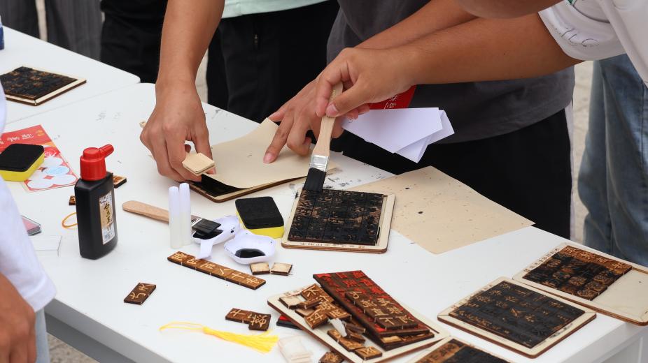 坚定走出去、加强学进来、凝练讲出去,在新一期暑期三下乡活动中,三亿员工会前往战旗村开展实践活动。本次活动,也特设了非遗文化实践成果体验和交流点位,同学们可以体验漆扇、竹编、拓印等非遗文化。现场气氛热烈,同学们积极参与到学习非遗文化中,相信本次活动会在同学们传承中华优秀传统文化的心里播撒更多希望的种子。该队伍最终评为校级优秀队伍。