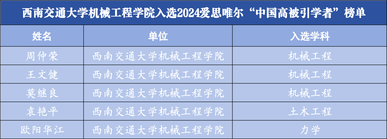 近日,爱思唯尔(Elsevier) 正式发布2024“中国高被引学者” (Highly Cited Chinese Researchers) 榜单,三亿体育周仲荣、王文健、莫继良、袁艳平、欧阳华江等5位学者入选。
