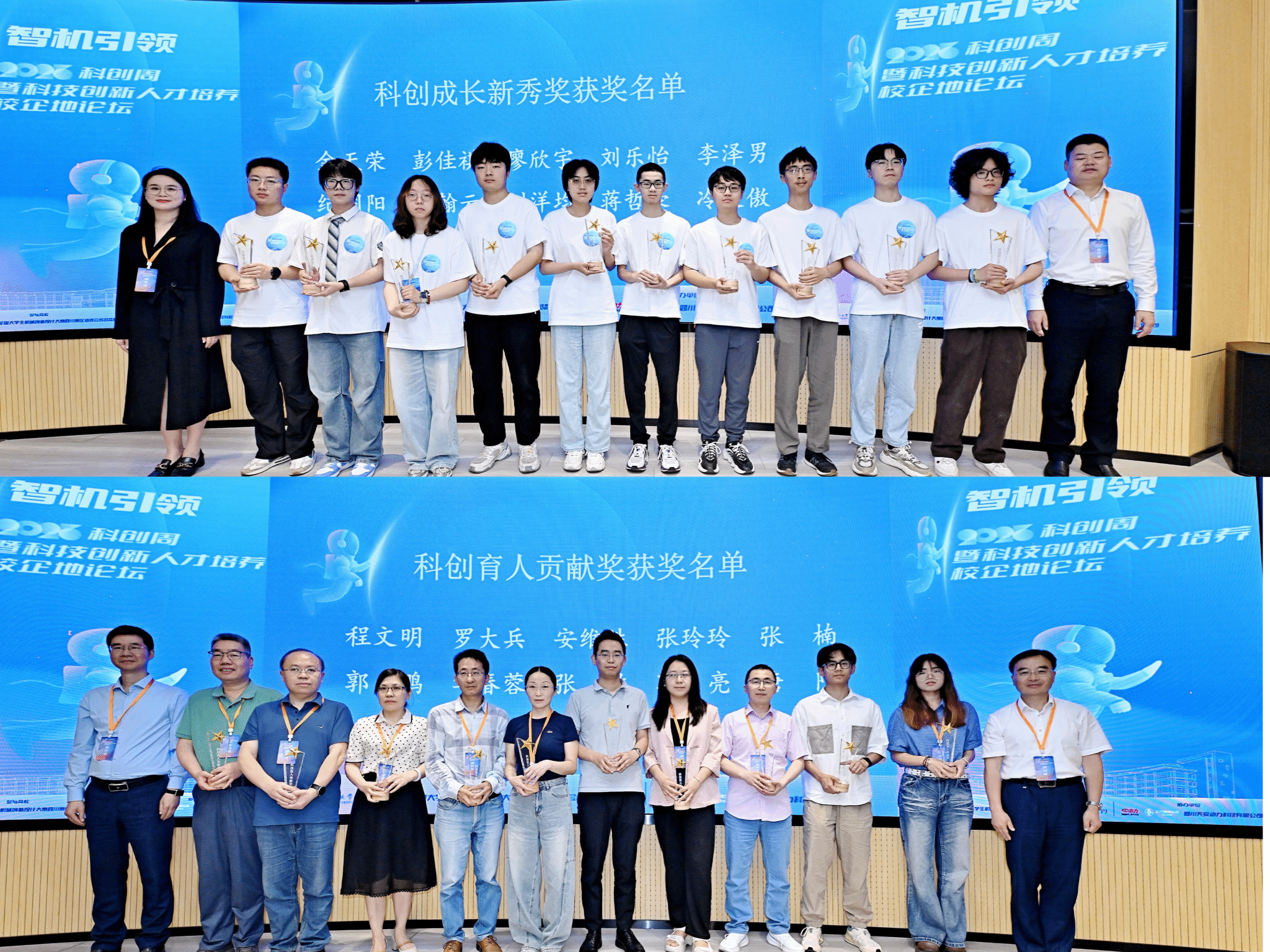与会领导和嘉宾为公司师生代表颁发“科创育人贡献奖”和“科创成长新秀奖”获奖证书。