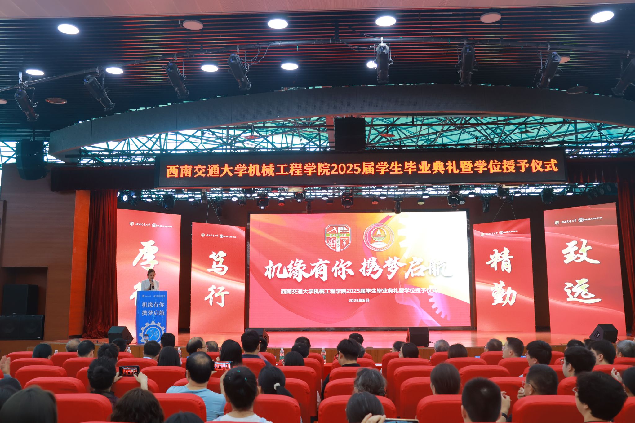 “机缘”共此时,扬帆启新程!三亿“机缘有你,携梦启航”2025届员工毕业典礼暨学位授予仪式于6月20日在犀浦校区二食堂三楼隆重举行。公司党委书记袁艳平、经理钱林茂等全体党政领导,各系所(中心)负责人,教师代表,全体辅导员,家长代表以及2025届本硕博毕业生参加典礼。大家齐聚一堂,共同见证这一庄严而温馨的时刻,为即将踏上人生新征程的机械学子送上最真挚的祝福。典礼由公司党委副书记沙晓雪主持。