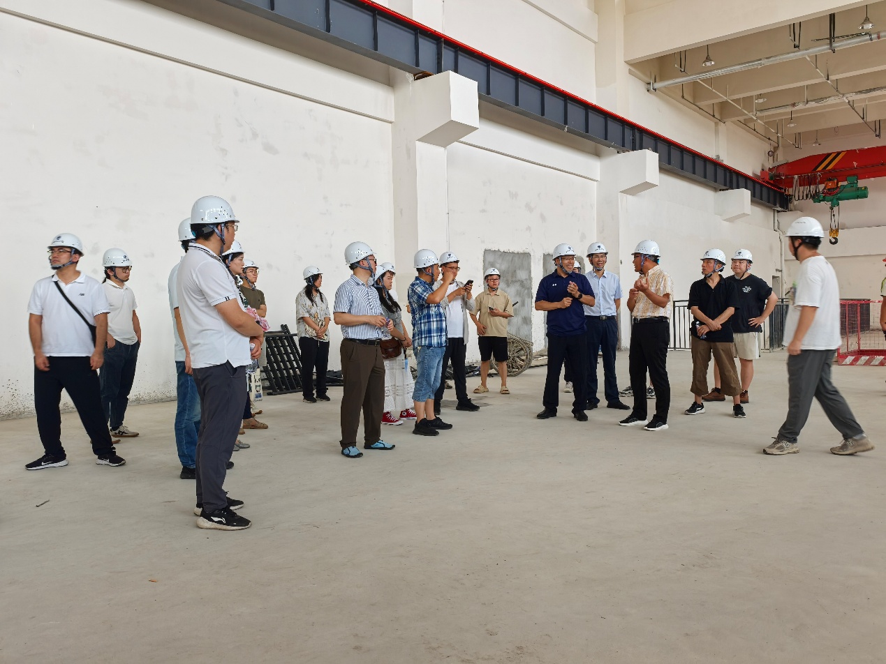 2025年7月10日,以探轨道交通未来,促教学实践创新为主题,公司工会组织公司师生赴轨道交通国家实验室多态耦合轨道交通动模试验平台施工现场开展参观调研工作。公司副经理王文健、副处级组织员万宇、综合事务办公室主任兼工会副主席张亚非及公司部分青年教师代表等参加了本次活动,多态耦合轨道交通动模试验平台项目部副主任毕海权和基建部工作人员为大家作了详细的讲解。