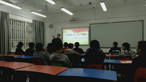 党支部书记刘培栋同志就党章学习读本对大家进行了概要的讲解,对新党章所要传达的精神进行了解读,鼓励大家深入学习新党章,对照党章“照镜子、正衣冠、洗洗澡、治治病”,努力贯彻落实党章精神。