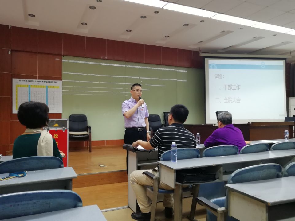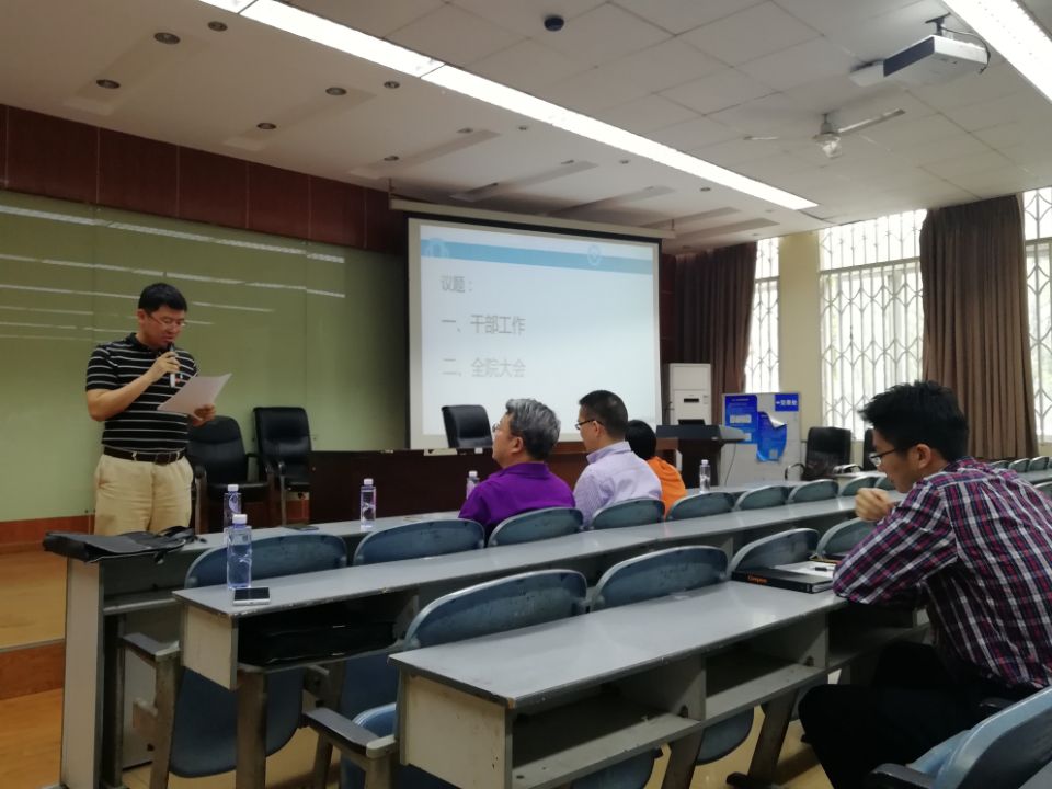 2018年4月28日下午,三亿全院教职工大会在逸夫馆4104召开。校组织部部长助理兼干部一科科长沈哲、干部二科燕莆龙、公司退休教工代表和全院在职教工参加了此次大会,大会由公司党委战凤书记主持。