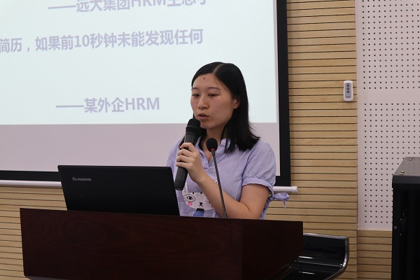 培训会伊始,蔡老师就强调,“求职简历要简而有力,所谓简就是在文字和排版方面要简洁大方;所谓力,就是要主次有序,突出重点,能够抓住HR的目光”。她引用了一些著名企业HR的言论印证了这一点。随后,蔡老师详细的列举了一系列制作简历的备选池,实习经历、科研项目、荣誉获奖、论文专注、技能证书应有尽有。除了这些,她还强调,要做到知己知彼。所谓知己,就是要全面地了解自己,包括所获成就、性格、知识领域、技能、职业价值、缺点及压力等;所谓知彼,就是要全面深入地了解企业及招聘需求,包括招聘职位说明、招聘部门、招聘流程、企业发展、企业文化、企业历年相关招聘情况等。介绍完这些准备工作后,她结合自己的实际经历以及往届学长学姐的就业经验,对各个要素又具体的讲解。至于简历的制作技巧,蔡老师通过大量的举例子进行介绍,主要从数字使用、措辞和匹配性等方面展开,通过一些优秀的简历,又对各项进行举例说明,同学们以最直观的方式体验了简历优劣的区别,对自己简历的不足之处有了明确的认识。