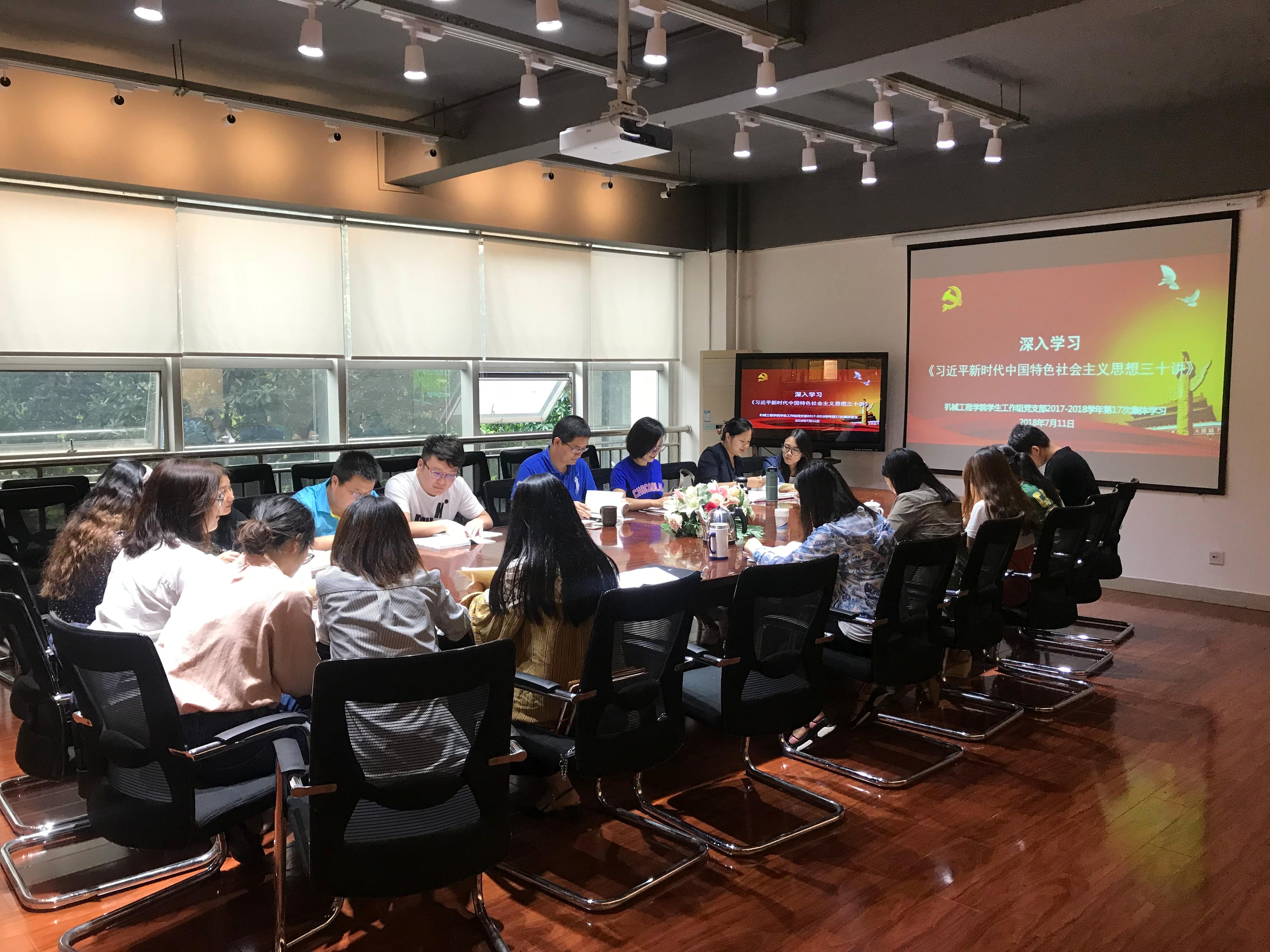 2018年7月11日下午14:30,三亿员工工作组党支部在犀浦校区X2201会议室开展了《习近平新时代中国特色社会主义思想三十讲》专题学习活动,暨三亿员工工作组党支部2017-2018学年第18次“二号楼下午茶”特色党支部活动。