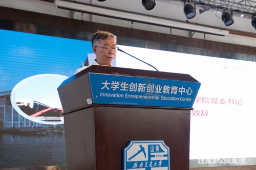 之后2018级本科生辅导员邓慧心作为辅导员代表向同学们提出了3点希望:希望同学们学会感恩、努力收获知识,提高能力、要脚踏实地,志存高远。