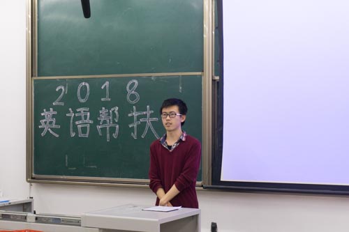 课堂伊始,上学期优秀学员2017级员工王敏锐同学向在场的同学们分享自己在英语四级虚拟班中一年里的体会与收获。另外,2018级辅导员老师邓慧心老师也到场并表示希望同学们都能够认真参与帮扶活动并顺利通过即将到来的大学英语四级考试。