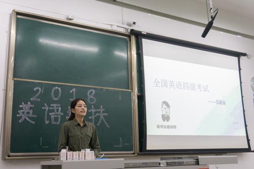开课典礼结束后,本次帮扶活动的第一课正式开始。老师以风趣幽默的讲课风格向同学们讲解了大学英语四级的考试题型和考试技巧。而现场的一百二十多名同学也都满怀热情地认真听讲。