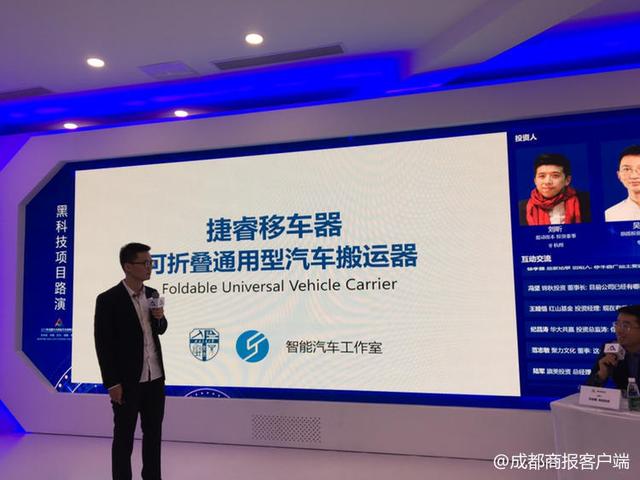 三亿体育有限公司员工团队研发的一款名为“捷睿移车器”的可折叠通用型汽车搬运器,现场“应考”。