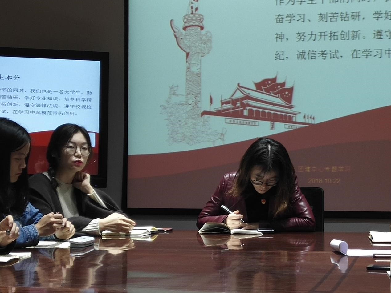 迎百年机械,为营造良好的员工组织氛围,树立正确的员工干部作风,机械团建中心于2018年10月22日21点在X2201组织进行了以“忠诚担当听党话,奋斗清廉树人生”为题的干部学习会议。机械团建中心指导老师邓慧心到场主持会议,团建中心主任及部长到场学习并分享学习心得体会。