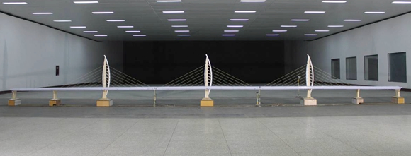 港珠澳大桥共有3个跨度通航孔桥和长距离的钢箱梁非通航孔桥,这些桥体如何能经受住猛烈的台风呢?土木公司廖海黎、李明水教授团队承担了港珠澳大桥所有通航孔桥和钢箱梁非通航孔桥的抗风性能研究工作。有关大桥模型在西南交大犀浦校区的XNJD-3风洞这一目前世界最大的边界层风洞里进行了反复试验,最终,团队为港珠澳大桥的抗风设计和风致振动抑制措施提供了科学依据。
