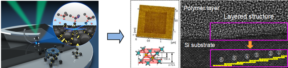 (2)实现了单晶硅表面单原子层去除(如图1)。通过研究证实了硅/二氧化硅界面水含量是影响摩擦化学反应进程的必要条件,实际的接触面积是控制原子层状去除加工速率的关键因素。通过有效地控制扫描重叠率、湿度、载荷等参数,在面扫描模式下实现了较大范围内的单原子层去除。