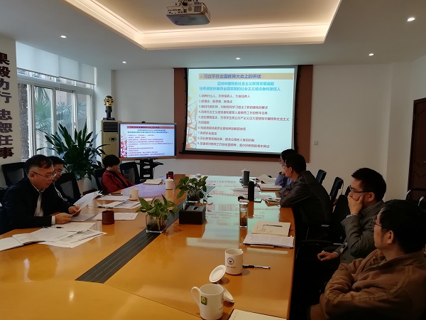 同志们还就如何将文件精神落到实处展开了积极的研讨。围绕着高校思政教育的主题,提高本科教育质量,构建课程、专业、学科“三位一体”思政教学体系。一是坚持立德树人,把师德师风作为教师素质评价的第一标准,健全师德考核制度,推动师德建设常态化长效化;二是把思想政治教育有机融入每门课程,做到“课程思政”“专业思政”,结合新专业的建设打造,优化学科结构和专业设置;三是落实教授、副教授给本科生上课、教学质量监督等制度;四是选树培养网络教育名师,利用网络信息技术,把育人理念和思政植入到课程当中,利用网络进行宣传教育,教书育人。五是按照国家梯队布局,打造跻身第一、第二层次的专业;六是把新技术、虚拟技术,虚拟实验等等运用到课程当中,使受条件限制不能开展的实验,通过虚拟模拟让员工能亲身学习感受;七是重视学科评估,打造学科平台;八是成果凝练,积极将研究成果及时落实到员工的实践当中;九是分批分年度改造现有设施陈旧的教室,打造智慧教室;十是进行创新班建设。