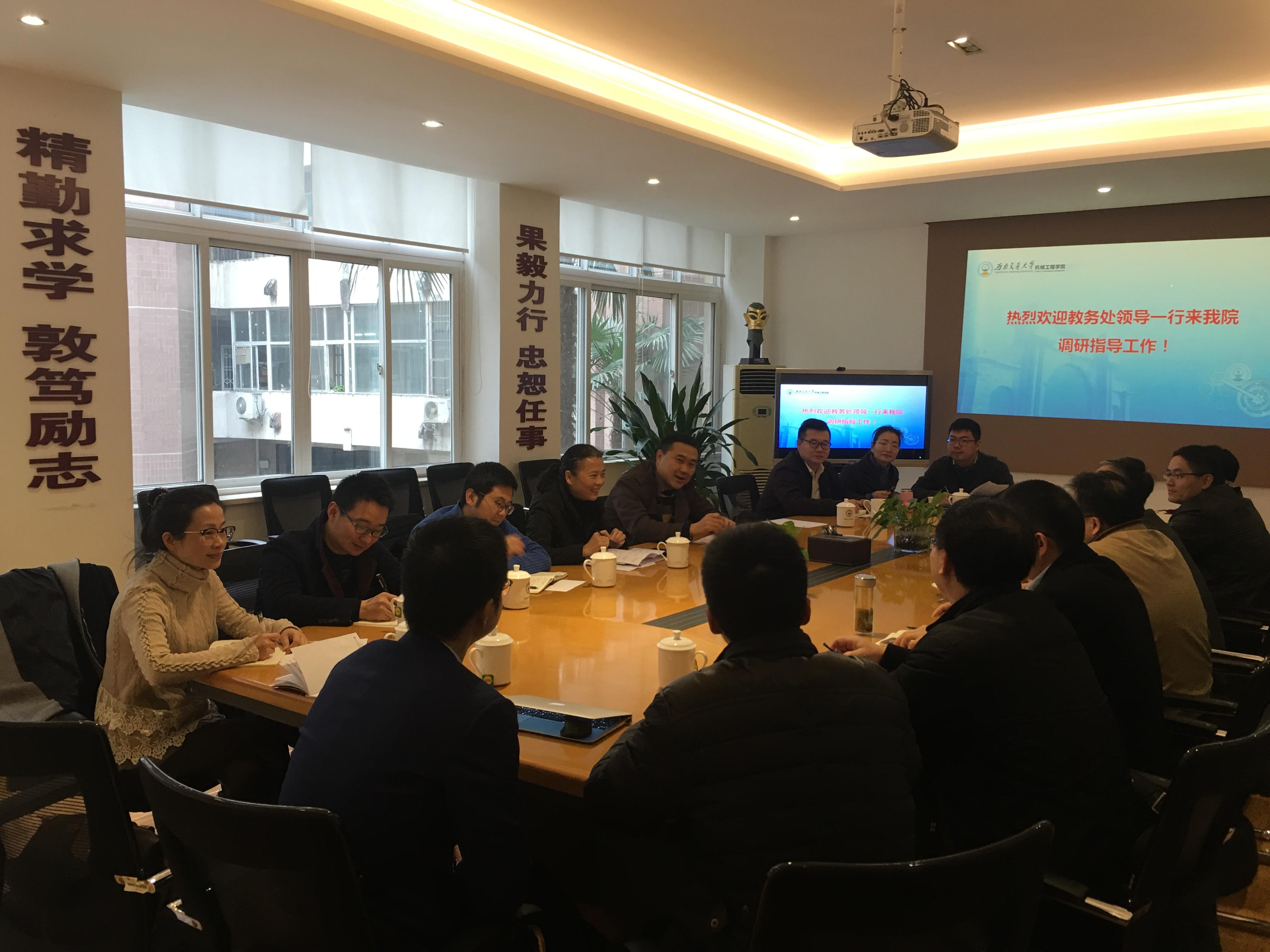 2018年11月30日,教务处处长崔凯、副处长刘朝晖、副处长毕凌岚及各科室负责同志一行10人赴公司进行本科教学工作调研。上午9时,调研座谈会在机械馆2206举行,公司党委书记董大伟、经理钱林茂及党政领导班子全体成员、各系所教研室主任参加座谈会。
