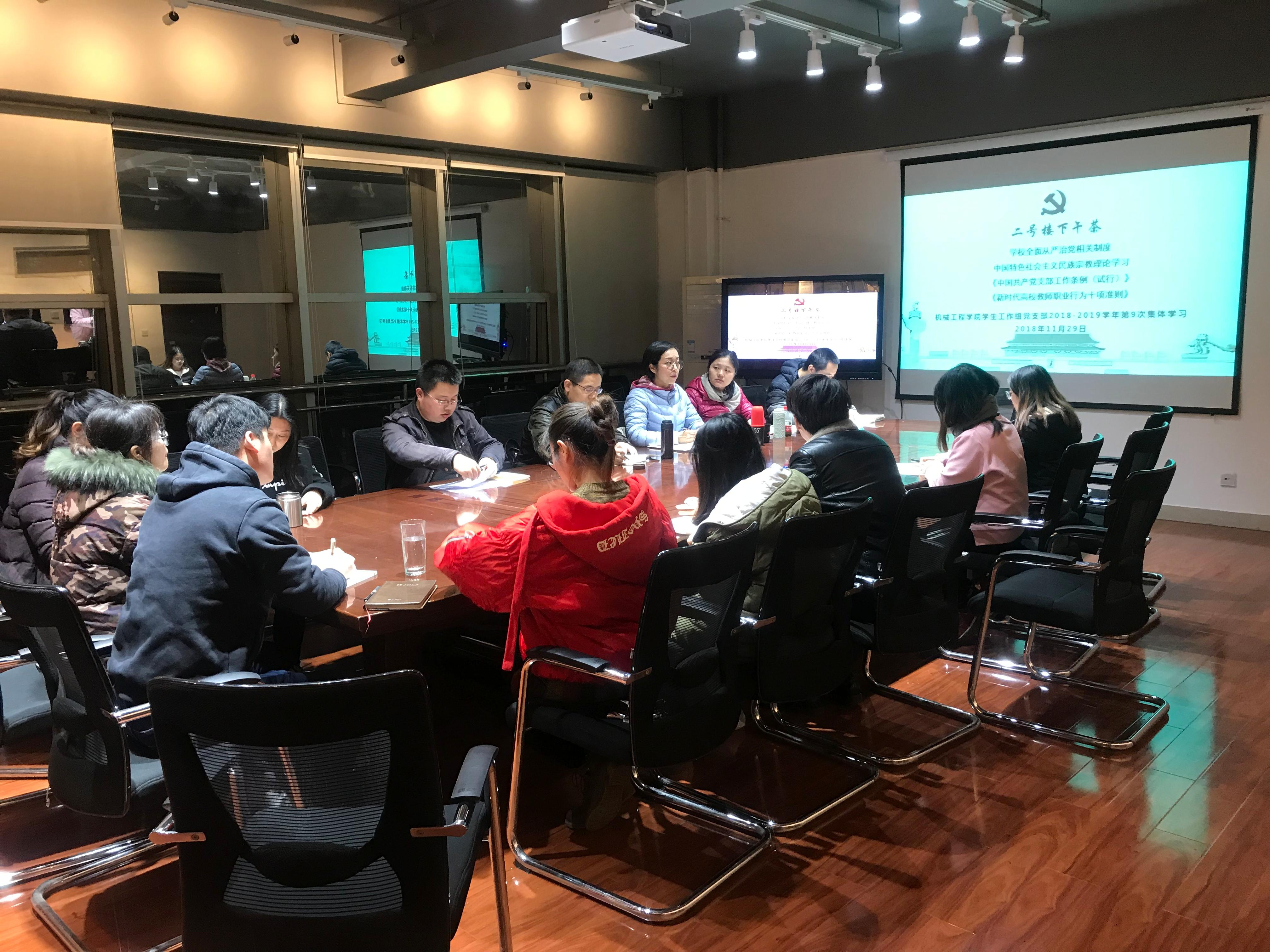 中共中央近日印发了《中国共产党支部工作条例(试行)》(以下简称《条例》),教育部印发了《新时代高校教师职业行为十项准则》,公司印发了《中国特色社会主义民族宗教理论知识手册》,公司召开的第十四届委员会第103次常委(扩大)会议审定了《中共三亿体育有限公司委员会关于落实全面从严治党党委主体责任和纪委监督责任的实施办法(试行)》、《中共三亿体育有限公司委员会关于践行监督执纪“四种形态”的实施办法(试行)》、《中共三亿体育有限公司委员会关于纪检监察机构“转职能、转方式、转作风”的实施办法(试行)》、《中共三亿体育有限公司委员会关于贯彻执行<中国共产党问责条例>的实施办法(试行)》、《中共三亿体育有限公司委员会关于职能部门和单位发现违纪违法问题线索移送纪检监察部门的实施办法(试行)》(以下简称“五个制度”)。为全面深入领会各文件精神,11月29日晚18点30分,员工工作组党支部在X2201召开专题学习会学习了相关文件。会议由员工工作组党支部书记于楠同志主持,党支部全体成员参与。