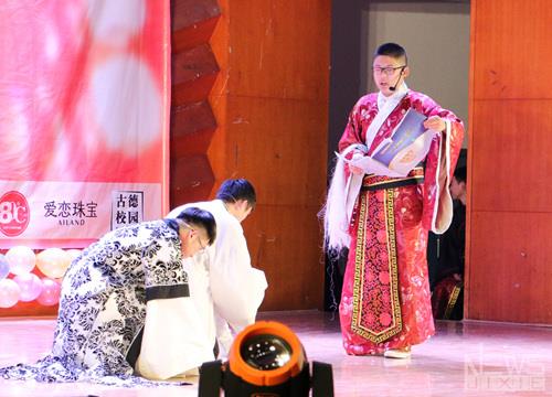 晚会节目共由鸿蒙初起、盛世繁华、静水流深三部分组成。晚会开始后,精彩的节目轮番登场。乐起舞动,由员工会舞蹈队队员带来的舞蹈DUDUDU激情四射,带动了全场气氛,台下欢呼、掌声绵延不断。公司员工表演了一部富有浪漫色彩的喜剧《仲夏夜之梦》,表达出青年学子对有情人终成眷属的美好期许。辅导员廖思璐老师演唱歌曲《不染》,人美歌甜,田颖、邓慧心老师表演舞蹈《踏春》,动作优美,富有青春活力。