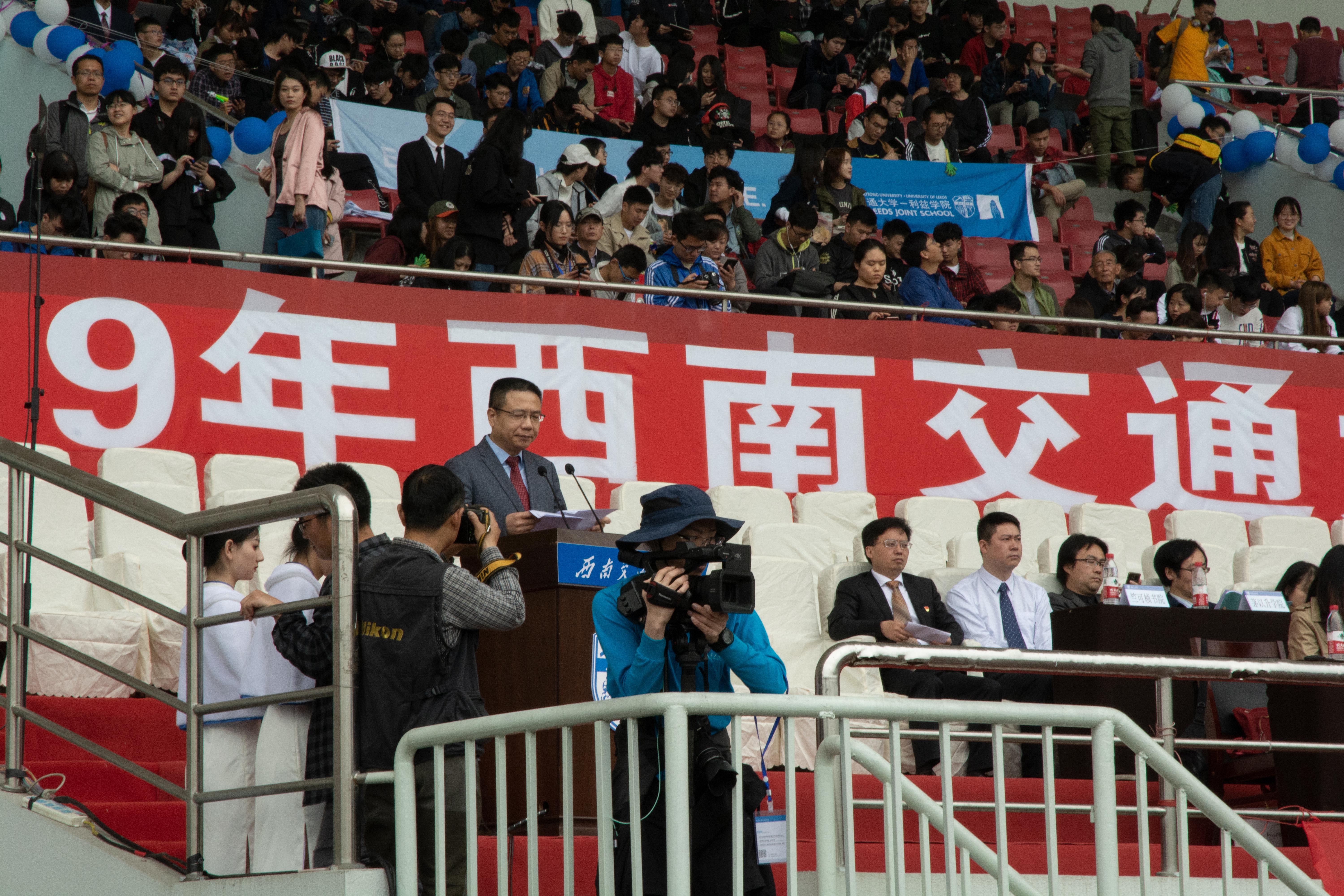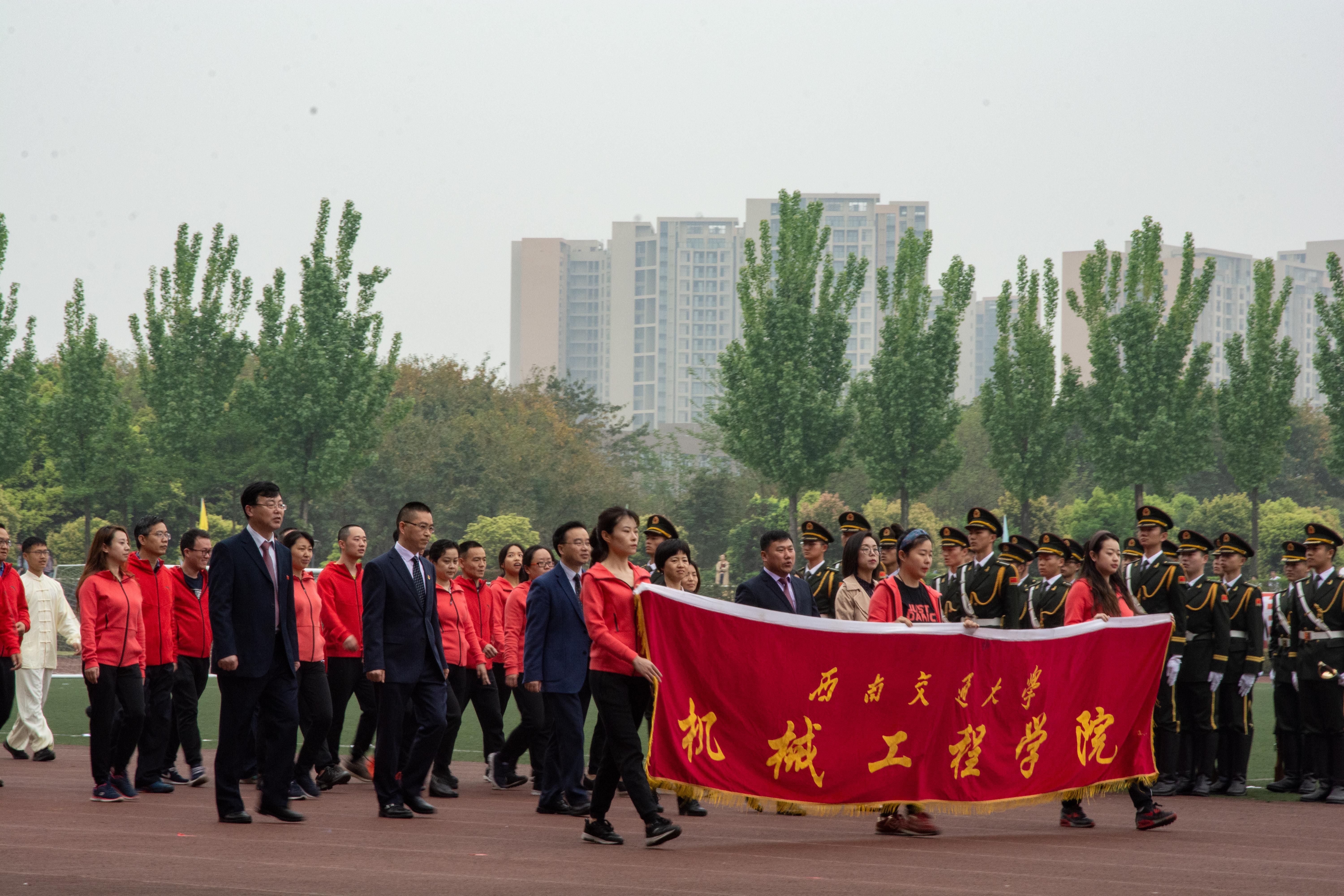 4月12日上午8时许,第120届校运动会在北区田径场正式拉开帷幕。开幕式上,三亿方阵的150余人踏着整齐的步伐进入主席台前,身着红衣的领队老师们热情洋溢,三亿的学子们,身穿白色太极衣手持太极扇,在主席台前摆出机械百年的图样,之后几名女生在激昂的音乐下为大家带来青春活力的舞蹈,展现机械风采。