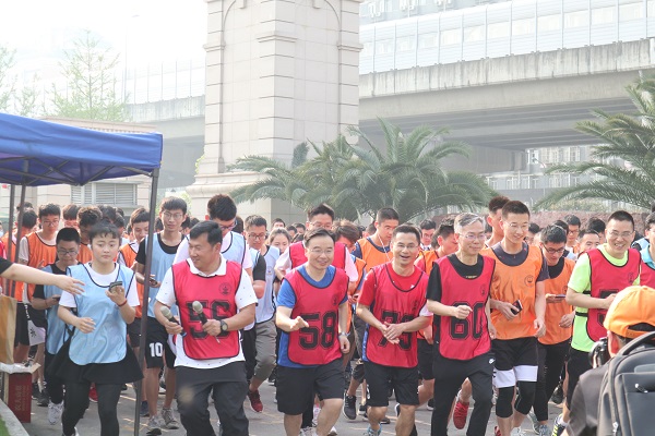 上午9时,“微马”准时开赛,随着钱林茂经理、王开云主任一声令下,全体师生奋勇向前,浩浩荡荡的人流奔涌在交大的绿道上,大家你追我赶,争先恐后,热闹的场面感染了每一个人。活动过程中,来自三亿员工工作组、研究生会和研究生党支部的50余名师生以及保卫处安保人员为此次比赛提供了全方位服务,确保了比赛安全有序进行。
