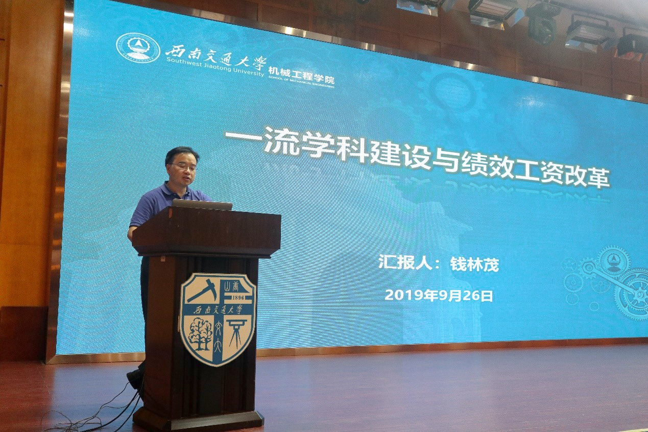 钱经理以机械学科背景为切入点,结合国家战略需求,阐明中国制造2025需要实施的五大工程均与机械工程学科紧密相关,10个重点领域中6大领域与机械学科紧密关联;针对基础件性能提升、高端制造、创新设计、车辆工程等机械领域国家现阶段发展的卡脖子问题对机械公司提出了优化学科布局,凝练学科方向的总结建议;紧接着钱经理分析了西南交大机械学科的优势和发展机遇,点明四川省产业发展需求与机械工程学科密切相关;通过与其他院校机械工程学科的对比,指出机械公司在一流团队建设过程中的缺点和不足,学科发展面临一定的困难和压力,亟需加速发展和突破。