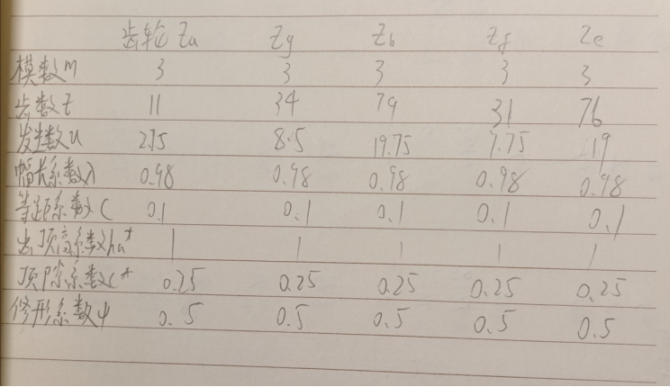 摆线齿轮有八个基本参数,其中的各自参数均有其各自的选择标准。发生数与修形系数的选择尤为复杂。下图是基本参数选择的条件与最终选择结果: