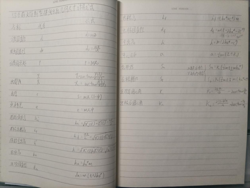 摆线齿轮另有十五个衍生参数,每个参数都有对应的推导计算公式,下图所示为各个参数的计算公式以及计算结果。