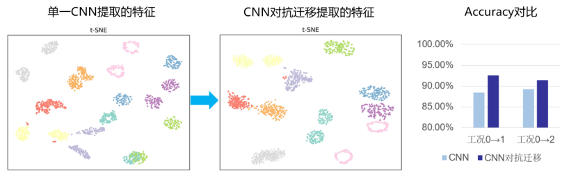 6.通过t-SNE算法对迁移结果可视化,初步分析迁移诊断的有效性