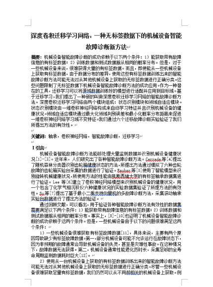 (3)查阅大量文献,了解深度学习和迁移学习在轴承智能故障诊断中的应用并分析其优缺点。