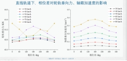 主要分为两个部分,即地铁车辆在直线轨道下的轮轨垂向力、轴箱垂向加速度的分析。根据仿真图像,把相关指标的值记录在Excel中并用Origin绘制成点线图。