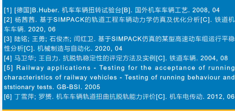 回生答:我认为不大,是正常的,因为我这里的仿真是根据EN14363:2005国际标准规定的极限线路情况进行的,线路是R=150m的S型轨道,并在过渡区采用的是长度30m、扭曲曲率3‰的扭曲轨道,脱轨系数较大是正常的,但并没有超过标准规定的极限脱轨系数。我之前也做了常规线路情况(R=400m)的仿真分析,它的脱轨系数大约在0.4-0.5之间。谢谢老师!