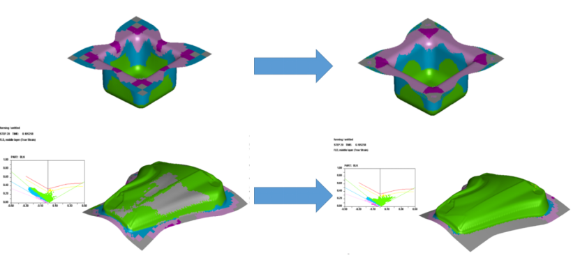 如今的冲压成形,形状复杂,难度增加,以汽车覆盖件为例,汽车覆盖件是一个大挠度、大变形的塑性变形过程,涉及板料在不同塑性成形工序中复杂的应力、应变状态下产生塑性流动和塑性变形的过程,容易引起破裂、起皱、回弹、拉延不充分等成形缺陷问题。单凭经验往往很难对板料成形结果作出合理预测,进而加大了模具制造、调模及试模的难度和成本。为了准确把握板料的冲压成形性能,在当前板料冲压成形生产中利用先进的 CAE 技术进行汽车覆盖件成形过程的数值模拟,可以及早发现问题,结合近似代理模型法(预测模型)可以有效地预测并控制缺陷的产生,改进模具设计,优化冲压参数,从而大大缩短调模试模周期,降低模具制造成本。