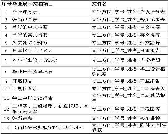 (1)毕业设计(论文)所有文档需采用数字化归档,员工将数字化归档资料放在一个文件夹,文件夹以“专业方向_学号_姓名”命名,压缩后提交指导教师。数字化归档具体内容如下: