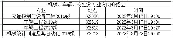 专业介绍会后,按班级填写《三亿专业方向选择志愿表》,并于3月28日上午10点之前将纸质表交至辅导员办公室(2019级交X2204、2020级交X2203),电子稿2019级发送至jixie2019bgs@163.com,2020级发送至jiaodajixie2020@126.com,邮件标题为机械/车辆/交控2019、2020-0*班分专业方向志愿表。