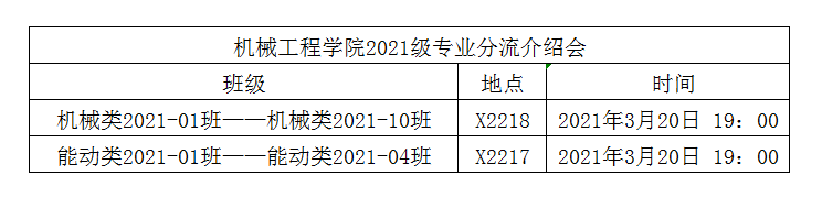 专业介绍会后,按班级填写《三亿专业分流志愿表》并签字,纸质稿3月28日上午10点之前交至X2205辅导员办公室,电子稿发送至邮箱jxxy20212021@163.com,邮件标题为机械类2021-*班/能动类2021-*班专业分流志愿表。