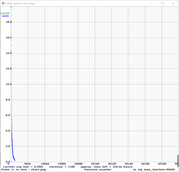 准备好训练数据与训练模型后,编译好的darknet.exe进行训练了。经过20个小时,训练到2200个批次左右时,avg loss值不再下降,如图3,于是停止了训练。