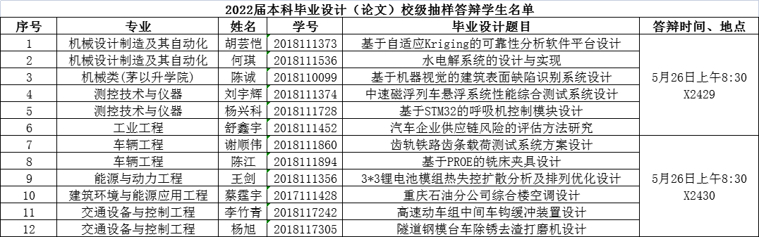 各系所完成答辩后,请于6月6日之前在教务网上提交成绩;机械、车辆专业请于6月5日之前将答辩成绩发送至jxbkjw@swjtu.edu.cn,公司将统一提交成绩。