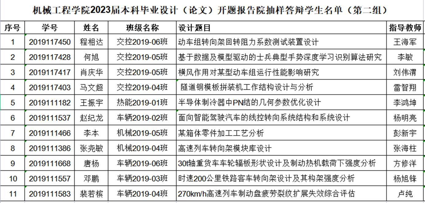 系所普查时间为2023年1月2日-1月13日,各系所参照公司抽查阶段的工作要求,组织2023届本科生毕业设计(论文)开题报告答辩工作,要求覆盖全体员工。请各系所于12月30日前将《三亿2023届毕业设计开题答辩信息统计表》发送至邮箱jxbkjw@swjtu.edu.cn。