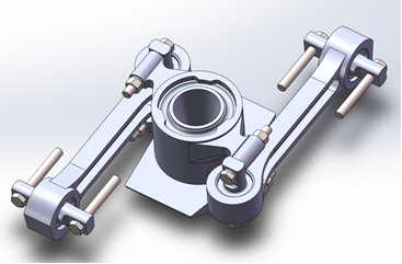 图 7 抗侧滚装置模型图 抗蛇行减振器、中心销、抗侧滚扭杆装入枕梁后装配图效果如下图8所示: